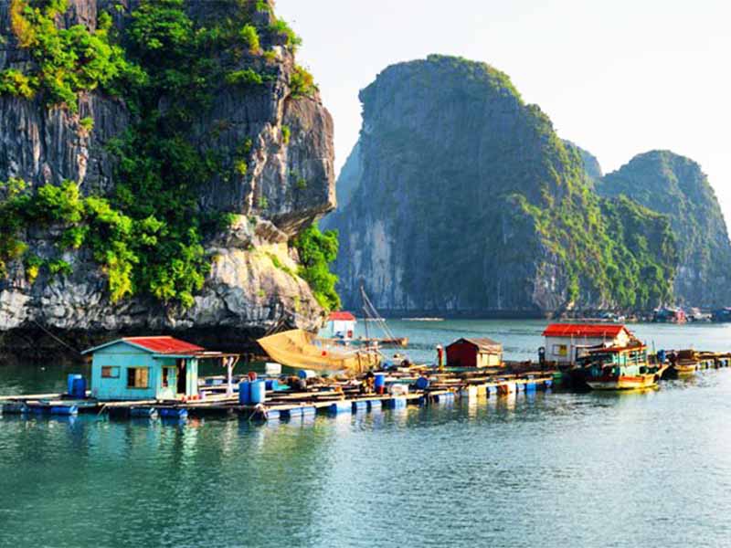 07:30 Sit on a bamboo boat to visit Vung Vieng floating village surrounded by mountains. We will trace our way among numerous floating houses and small rowing boats that are used in everyday life as vehicle, itinerant shops, fishing utility and even sometimes as an overnight shelter