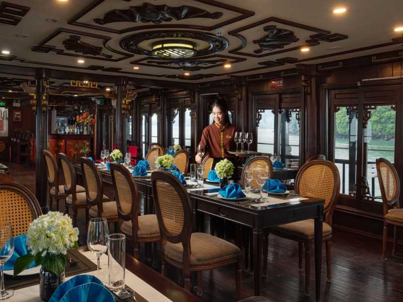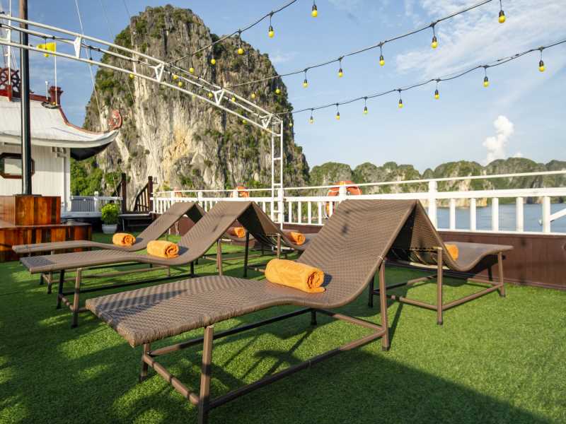 06.00: Start your day with a Tai Chi session on sundeck or catch a morning view of the stunning bay’s landscape. Coffee will be available around 6.30.07.00: Breakfast will be served as a buffet, familiar to your stomach to fulfill your strength and ready for another day.